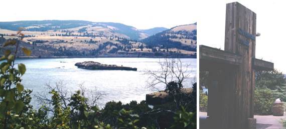 The Dalles area in the Columbia River, Oregon where Oregon Trail emigrants passed by until they reached Oregon City (right)
