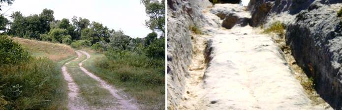 The Overland Trail near Fort Laramie (left), and Deep Rut Hill, WY (right)