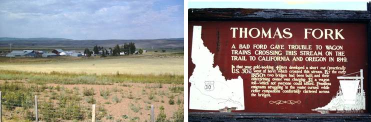 Border, WY which today tends to be a frost pocket (left), and nearby Thomas Fork sign near the WY/ID border (right)