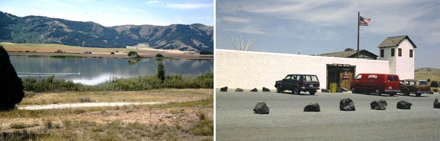 Soda Spring, ID area (left) where emigrants passed through, and Fort Hall in Pocatello, ID (right)